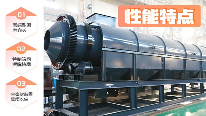 中森智能大型齒輪滾筒篩、齒輪傳動滾筒篩分機、齒輪圓筒篩物料自下而上通過篩分筒得到分離,細料從篩分筒前端下部排出,粗料從篩分筒下端尾部排出,滾筒篩在使用過程中,運轉緩慢均勻,沖擊振動很小、工作平穩(wěn)、其安裝簡單,有時甚至不需要專門的基礎,可以直接旋轉于平整的地面或樓板上及料倉下,并針對篩分物料由于室外存放而造成的篩分濕度過高從而加大粘性。