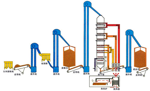 按照烘干工藝分為順流糧食烘干機(jī),與混流糧食烘干機(jī),分別適應(yīng)于玉米烘干(順流)以及水稻、小麥、大豆、油菜籽等其他糧食烘干(混流)。以熱風(fēng)爐燃燒燃料產(chǎn)生的熱風(fēng)作為烘干介質(zhì),主要有烘干段、緩蘇段、冷卻段等組成,采用多段烘干加緩蘇冷卻的先進(jìn)工藝,保證了烘干后的糧食品質(zhì),大幅將糧食破損率增值降至0.3%(混流)~0.5%(順流)以下,水稻爆腰率增值降低至1.5%以下。根據(jù)不同機(jī)器的型號(hào),可以每日將100到1000噸的糧食降水5到18個(gè)百分點(diǎn)。