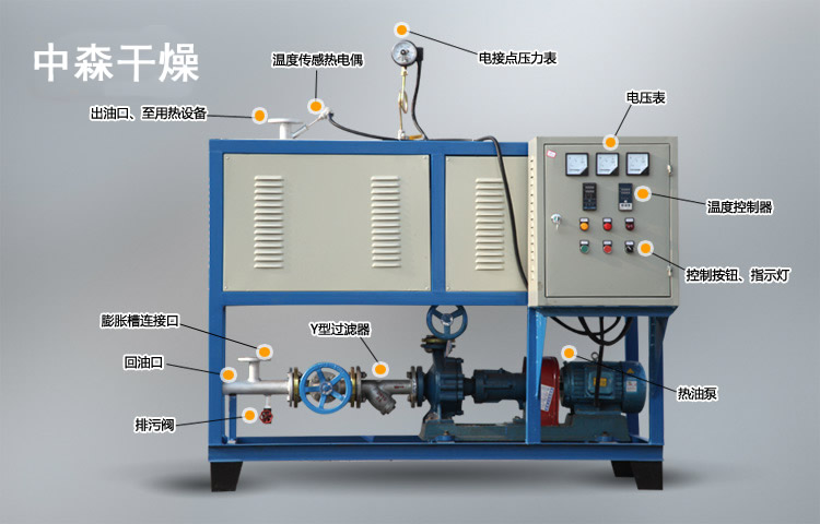 電加熱導熱油爐運行可靠:具有完備的運行控制和安全檢測裝置,可以精密地控制工作,防爆等級可達C級,因而其更加安全。