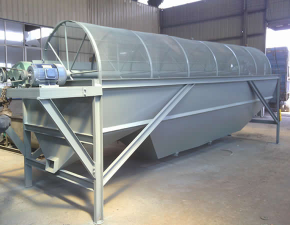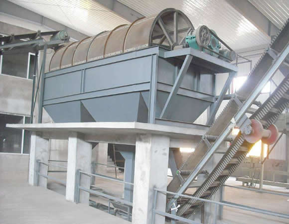 分級除雜滾筒篩: 滾筒篩整個設(shè)備有儲料倉、滾筒篩分機和皮帶輸送機組成。物料由裝載機裝入儲料倉,然后進入滾筒篩,旋轉(zhuǎn)的篩筒帶動物料在篩筒內(nèi)翻滾,從一端向另一端移動,小于設(shè)定(網(wǎng)眼)的物料由篩網(wǎng)漏出進入皮帶機,然后由皮帶輸送機匯集從另一端卸出,大于網(wǎng)眼的廢料部分從篩網(wǎng)另一端排出,整個過程連續(xù),物料分級準(zhǔn)確,滾筒篩由電機、減速機、驅(qū)動聯(lián)軸器、軸承支座和篩籠等組成。