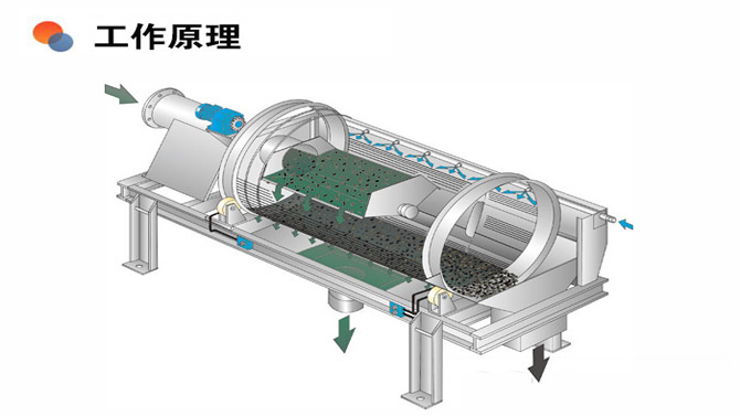 密封封閉式滾筒篩:密封式滾筒篩主要是由動力組件、粗料出料口、上密封殼、篩筒、篩下物出料口、擋料板、進料口、支架等部分組成的。滾筒篩通過變速減速系統使篩分筒在一定轉速下旋轉,其分級級數一般從細到粗為1-4節,物料自上而下通過篩分筒得到粉粒,細料從篩分筒前端下部排出,粗料從篩分筒下端尾部排出,實現物料分級目的。