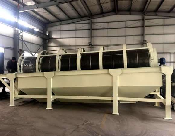 電機驅動滾筒軸線作旋轉運動,減速機調節筒體以一定的轉速旋轉,物料由進料口進入筒體內,在旋轉產生的離心力作用下,物料在筒內翻滾,自上而下通過分級篩網析出,由于篩網分級尺寸不同,物料逐漸被分離篩選,粒度合格的物料經篩分后落入到各自的漏斗,然后由人力方式運出或通過輸送機自流送往成品站。合格產品經過下端出料口排出,顆粒較大,分選不合格的產品經另一排料口排出,筒內清理裝置,使篩網不宜被阻塞。